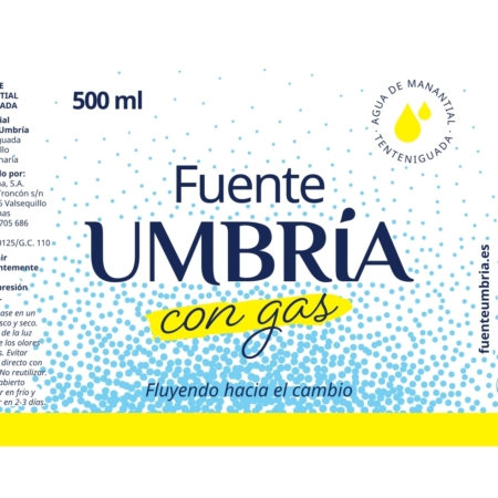 Fuente Umbría: Agua de manantial con gas botella 500 ml, pack de 12 uds